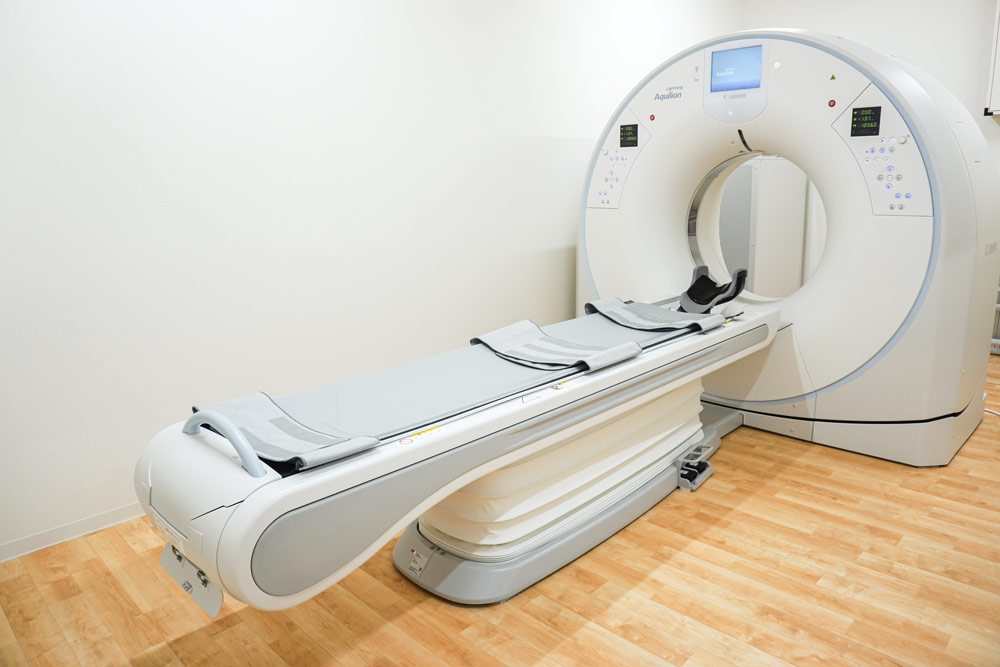 CT検査は、X線を用いて体の断面を見る検査です。当院では80列マルチスライスCTを導入しており、高速かつ高精細な画像を提供することが可能です。また、画像処理にはAIを使用したディープラーニング技術を搭載しており、より少ない放射線量で検査を行うことが可能となっています。